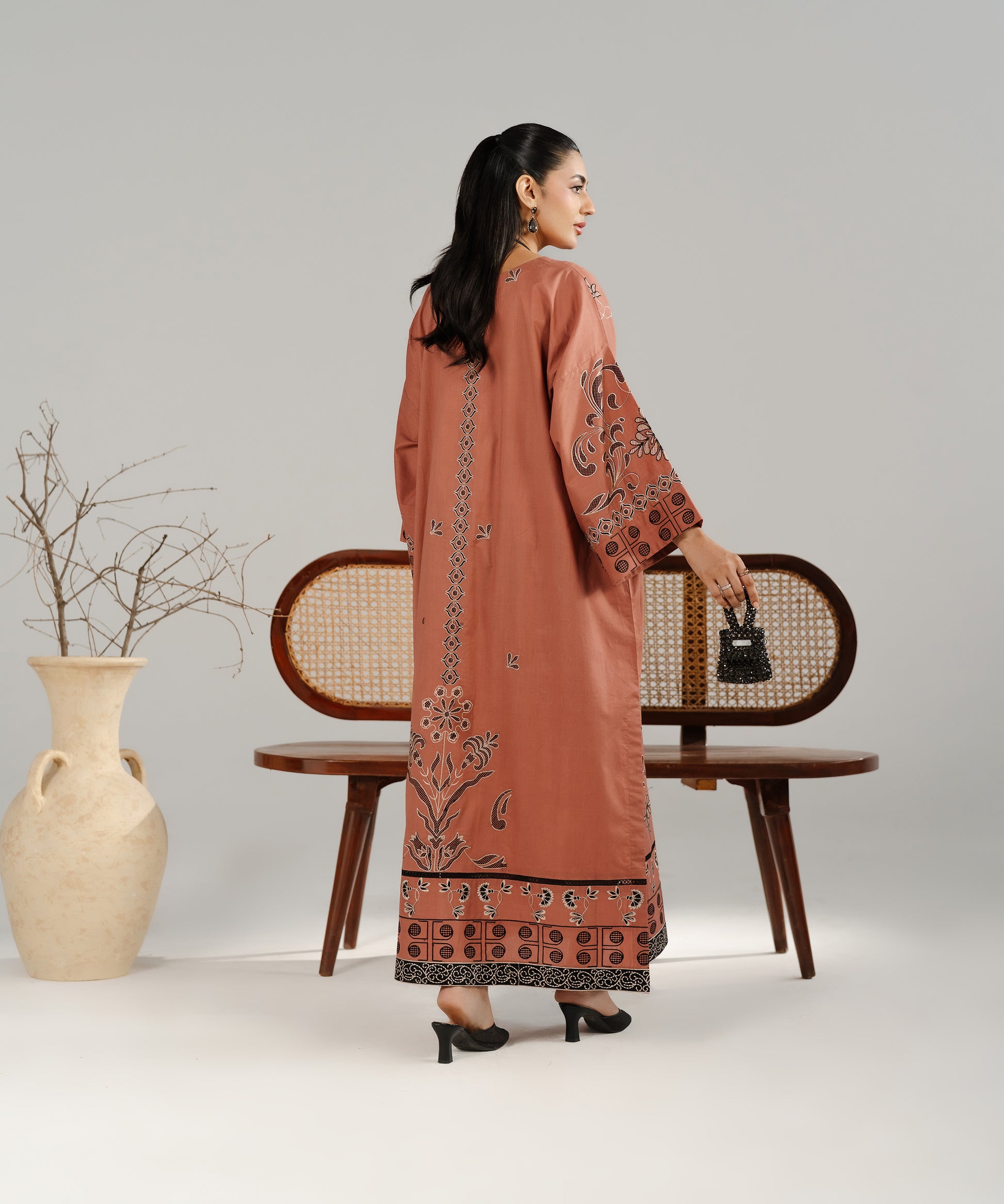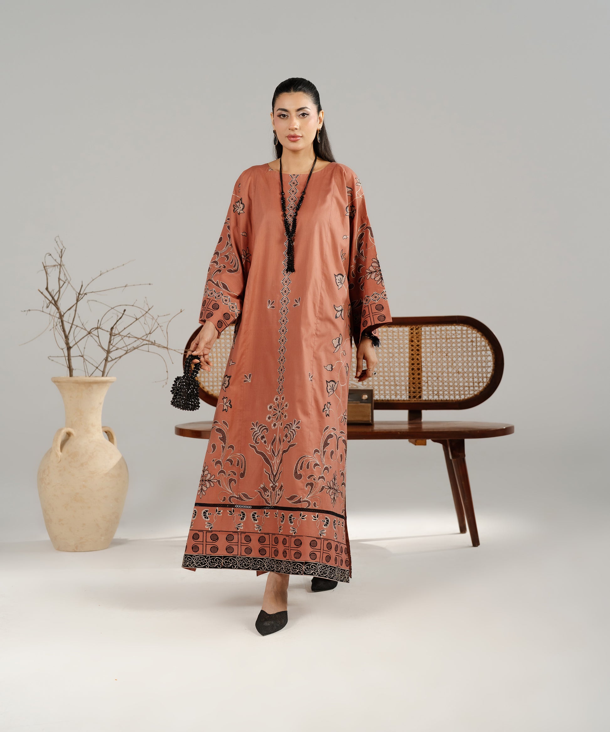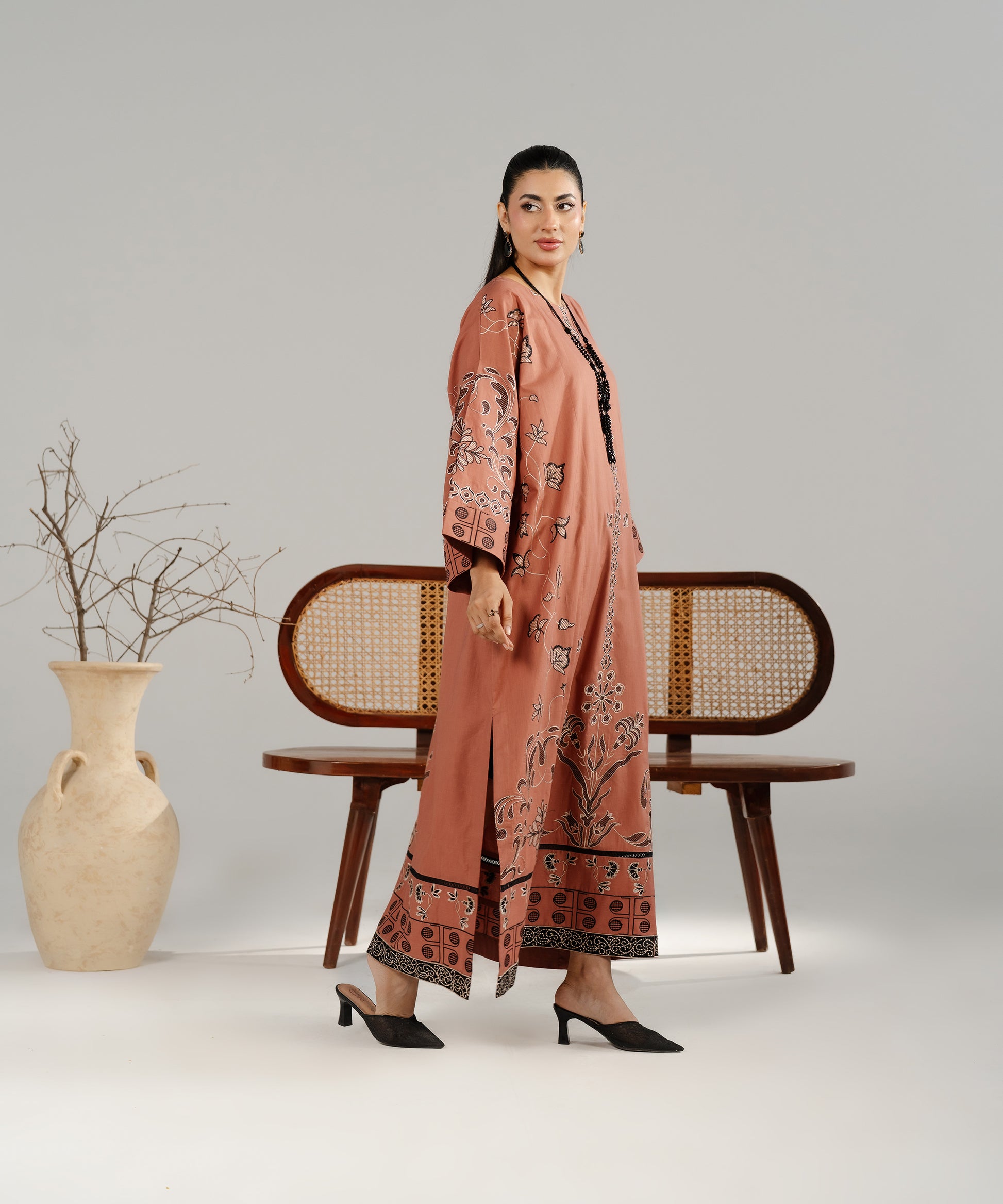 Embrace an effortless blend of tradition and modern flair with Zarqa. Set in a warm, earthy, rusty peach tone, this two-piece kaftan ensemble is designed for the woman who seeks comfort without compromising on presence.